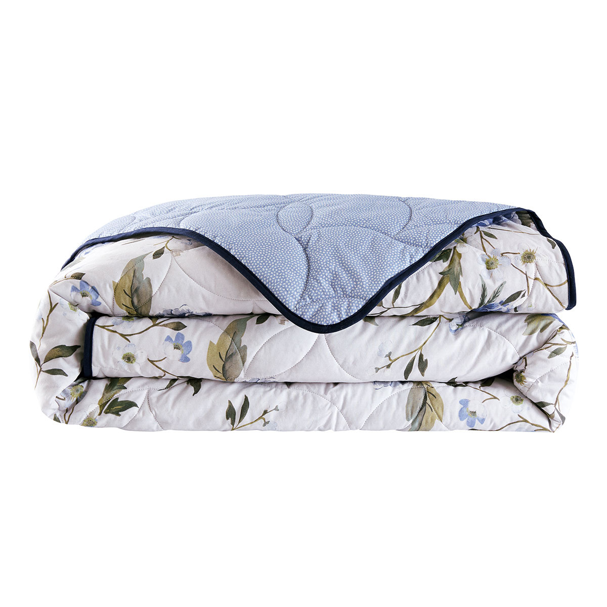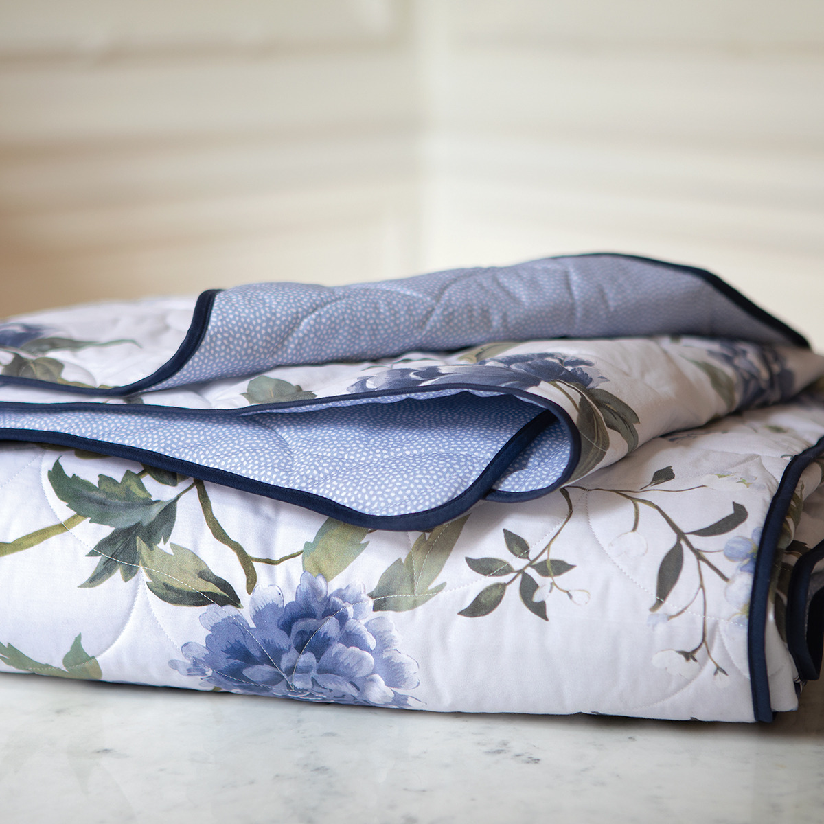 Ce dessus de lit matelassé assorti au linge de lit AMBOISE transporte votre chambre dans l'univers des jardins classiques. Les motifs floraux dans un camaïeu de bleu apaisant et le motif géométrique au dos créent une symphonie visuelle qui ajoute une touche d'élégance et de sérénité à votre intérieur.