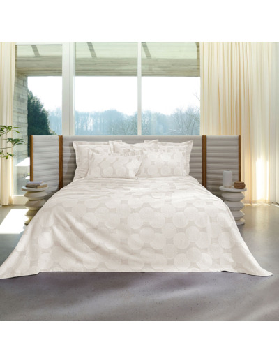 Le couvre-lit Dahlia grège en jacquard 380 gr/m² se compose de 80% de coton et de 20% de polyester.