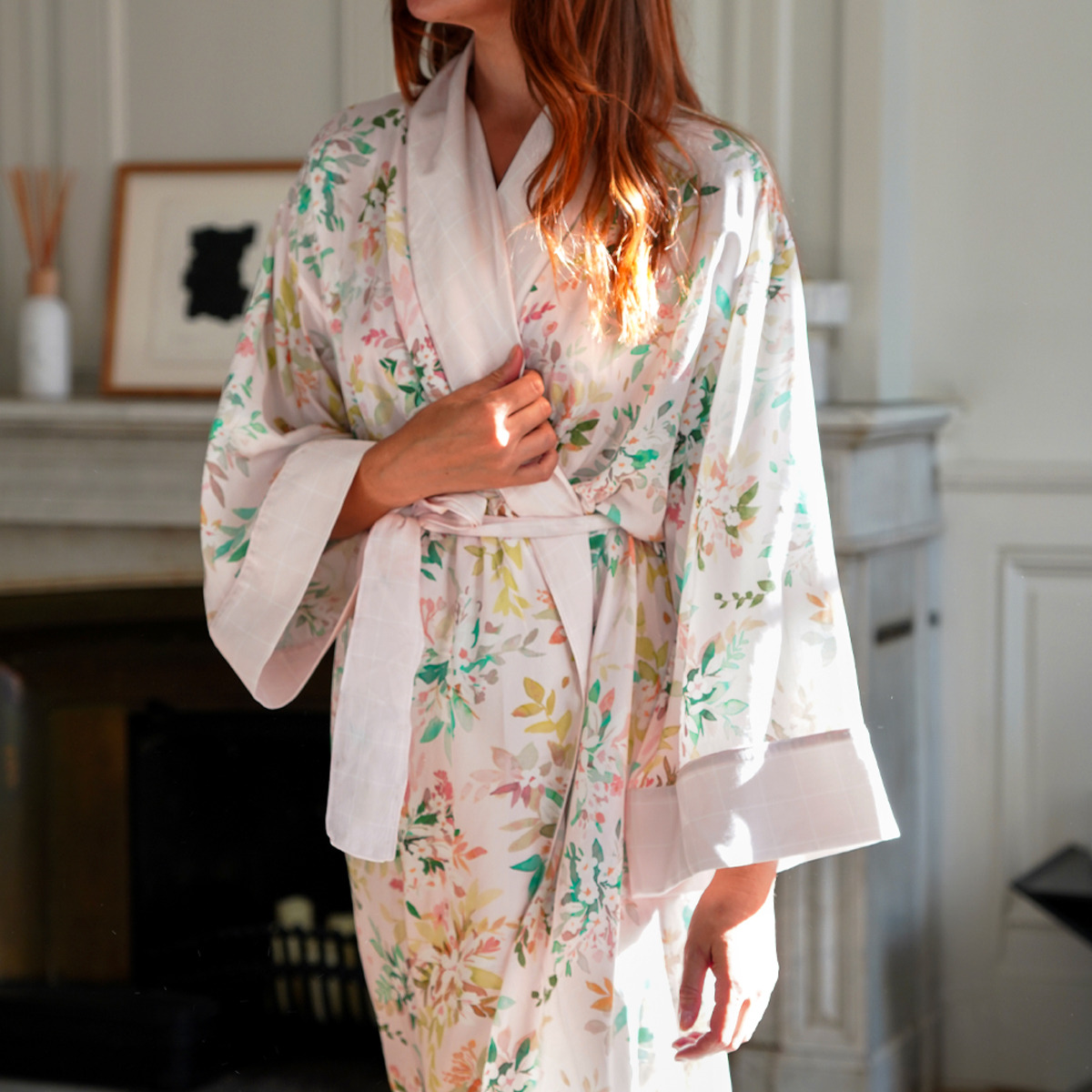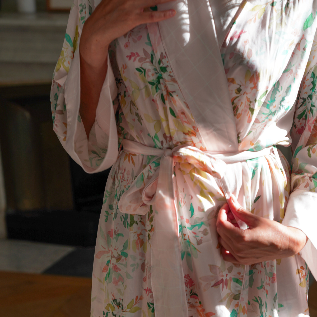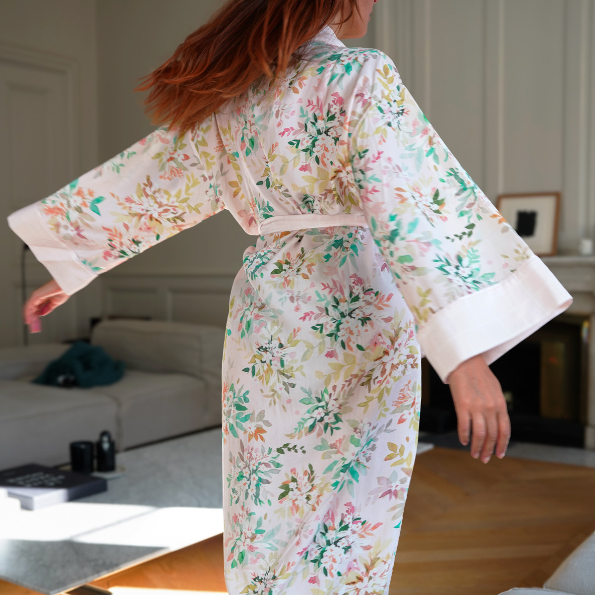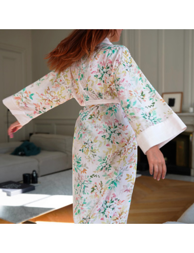 Enveloppez-vous dans le kimono de la collection Nil pour garder la douceur de vos draps sur votre peau et vous préserver de la fraîcheur matinale.