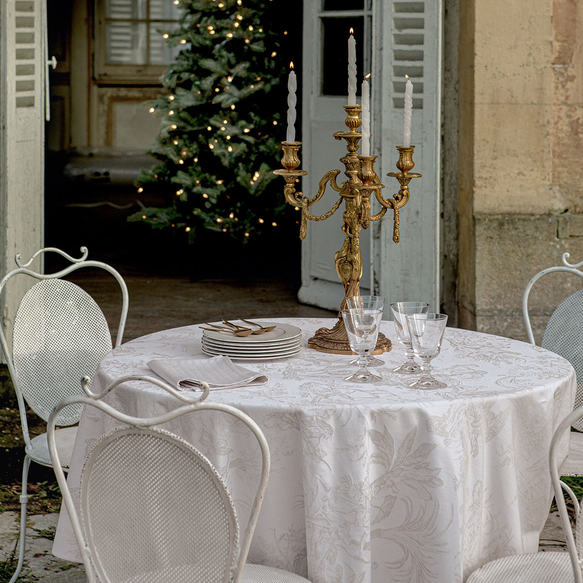 La nappe, pièce maîtresse de cette collection, est disponible en trois dimensions pour s'adapter à toutes vos occasions :