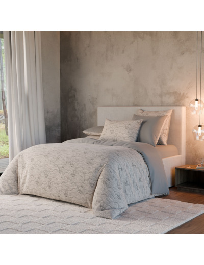 La parure comprend une housse de couette accompagnée de taies d’oreiller assorties au format sac.