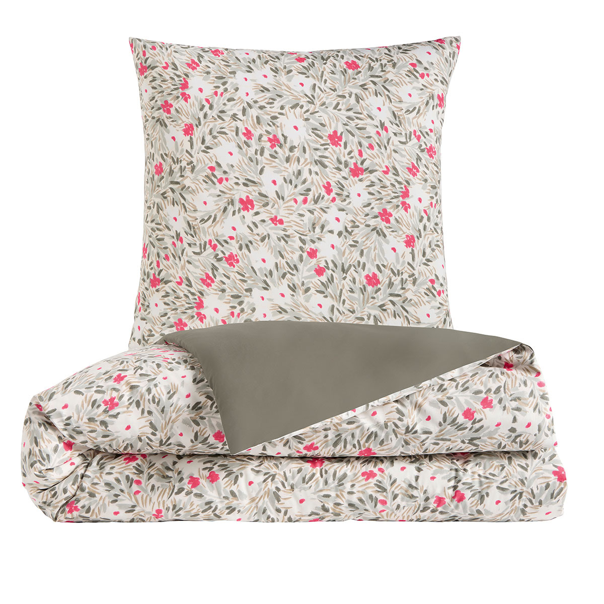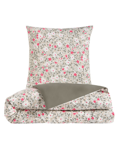 Confectionnée en percale de coton 80 fils/cm², la parure FINCA associe douceur et légèreté pour des nuits apaisantes. Son recto, orné d’un imprimé floral multicolore, et son verso en uni coloris Garrigue, s’accordent parfaitement pour offrir une esthétique raffinée et harmonieuse.
