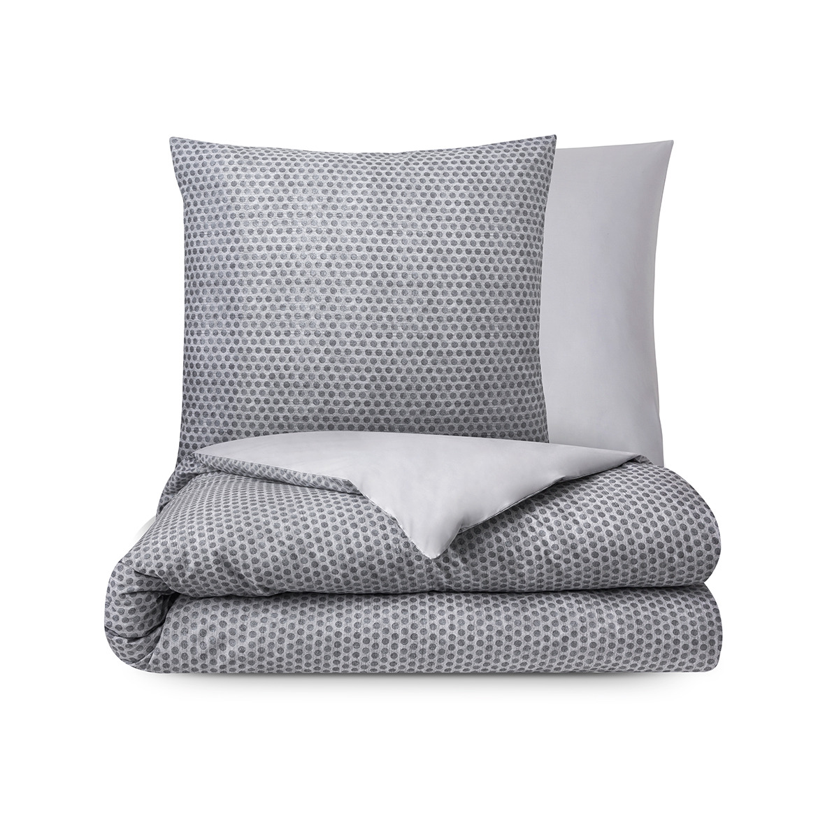 Explorez l'élégance intemporelle avec notre parure de linge TIMELESS en percale 80 fils, 100% coton, où les pois subtilement fondus dans des teintes grises évoquent une sensation de sophistication. Le revers de la parure suit harmonieusement avec la gamme Anne de Solène VEXIN dans le coloris horizon, créant ainsi un contraste subtil et raffiné.