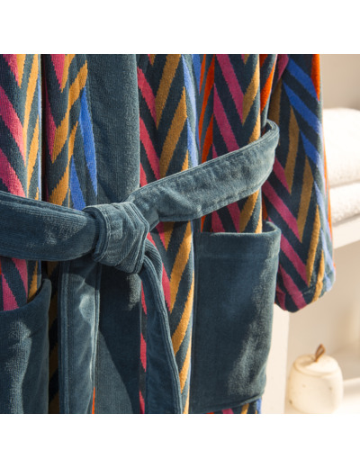 La couleur s’invite dans votre salle de bain avec ce peignoir MYSTIQUE aux motifs chevrons multicolores.
