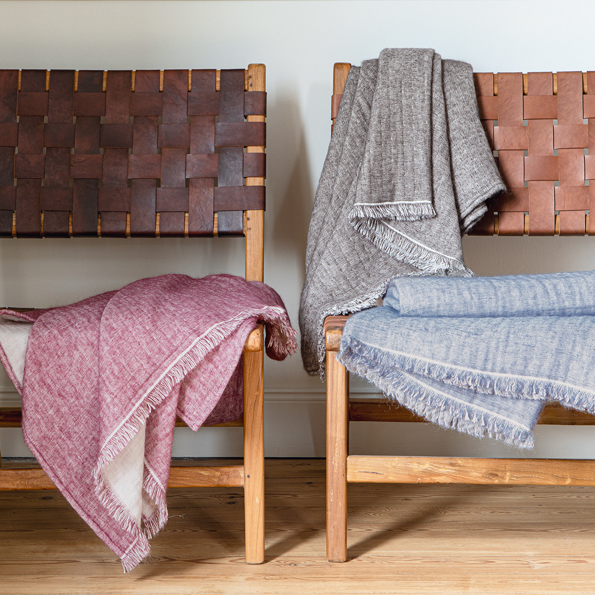 Ce plaid réunit des fibres exquises, coton, alpaga, mohair et polyamide, une alchimie précise.
