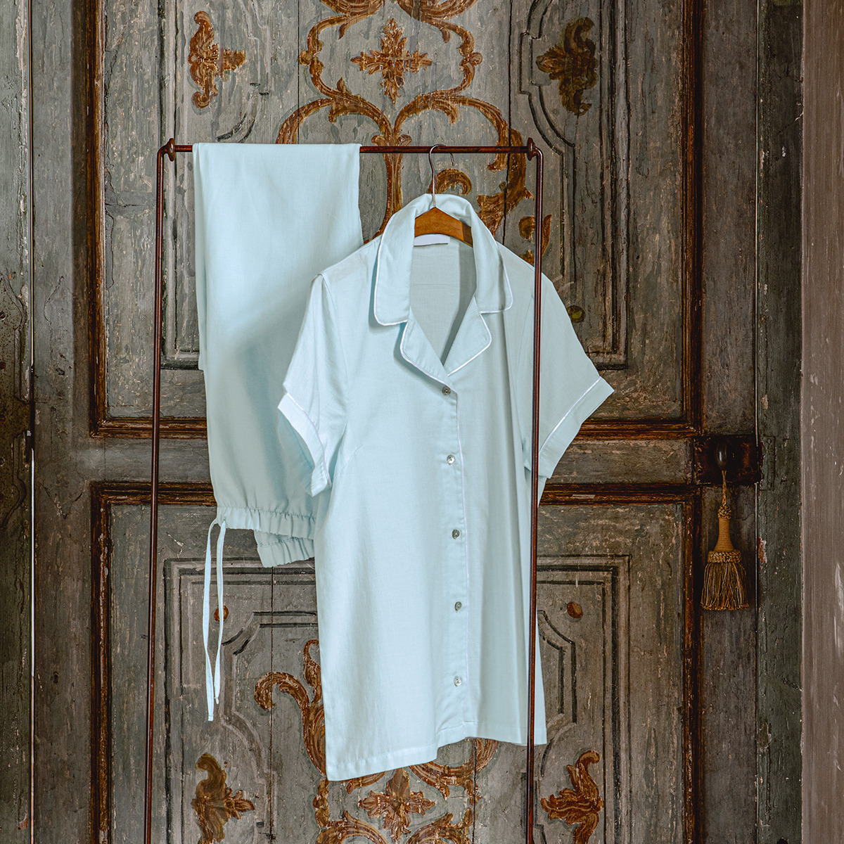 Le modèle ICONE incarne l'élégance décontractée avec son satin de coton 85gr dans un ravissant coloris aqua.