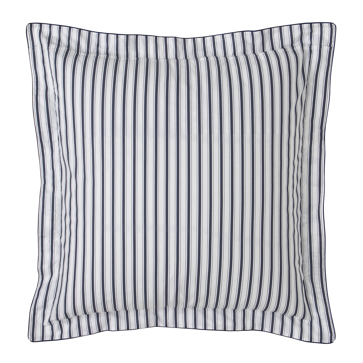 Disponible en 2 dimensions, cette taie d’oreiller est agrémentée d’un volant plat de 4,5 cm avec un passepoil bleu.