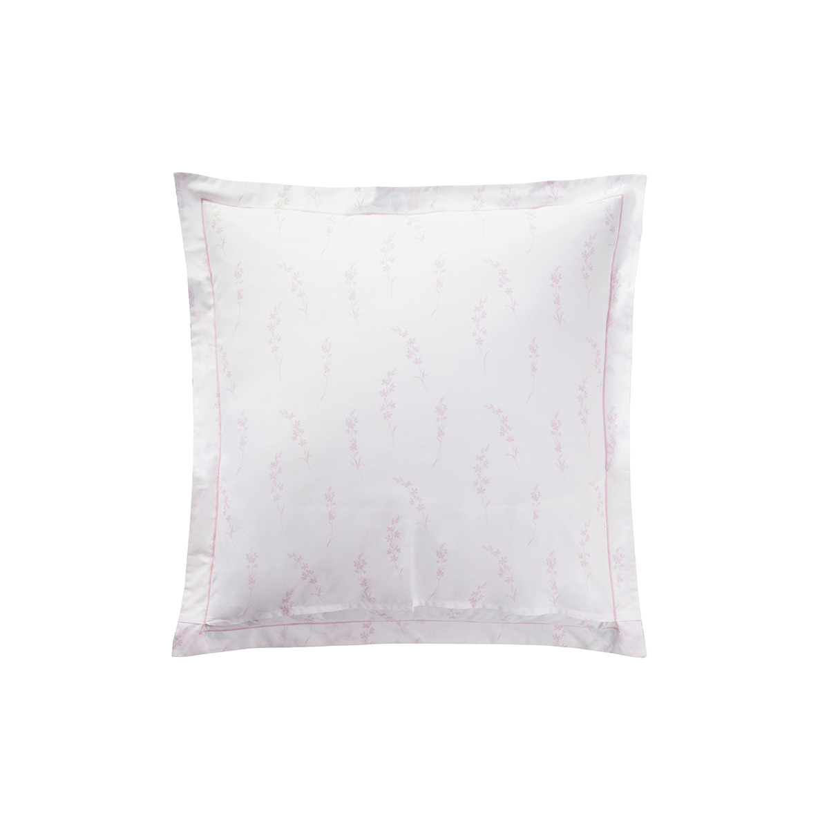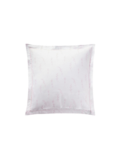 Elle existe dans 2 tailles : 65 x 65 et 50 x 75 cm. Un volant plat de 4cm surligné par un bourdon rose finit la taie avec élégance.