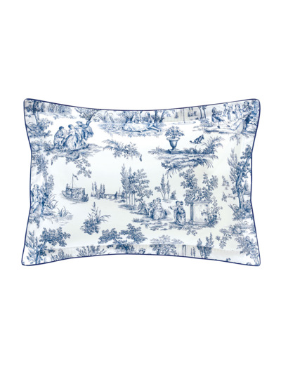 Le motif de toile de Jouy est réversible sur une rayure délicate avec une finition gros grain marine sur les taies disponibles en 2 tailles 65x65 et 50x75 cm. Un volant plat de 4 cm ajoute du caractère à ces taies.