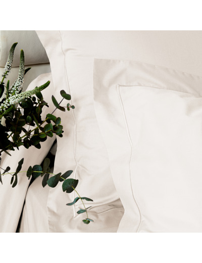 Cette taie d'oreiller est composée exclusivement de percale 100% coton peigné longues fibres d'une densité de 80 fils/cm² et dispose d'un volant plat de 5 cm.