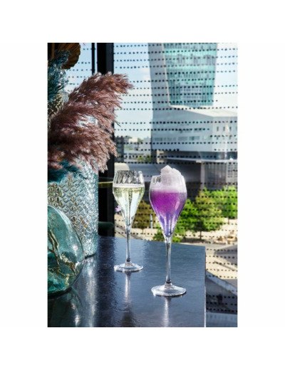 - **Durabilité** : Le cristallin utilisé pour ces flûtes assure une résistance accrue aux chocs et aux rayures, garantissant une utilisation prolongée sans compromettre leur éclat.