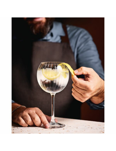 Cette collection se caractérise par les lignes verticales qui parcourent les paraisons de ses verres créant un jeu optique hypnotisant. S'ancrant résolument dans la tendances cotes optiques subtiles mettant en lumière les vins et les cocktails, sans pour autant détourner l'attention lors de la dégustation. Si la coupe 21 cl et le ballon 58 cl libèreront votre créativité lors de l'élaboration de vos cocktails préférés , la flûte 16 cl conviendra parfaitement à la dégustation des vins effervescents . Les verres à vins 55 cl, 45 cl et 31 cl, ainsi que la flûte 21 cl trouveront, quant à eux, tout naturellement leur place sur les tables des restaurants les plus branchés.