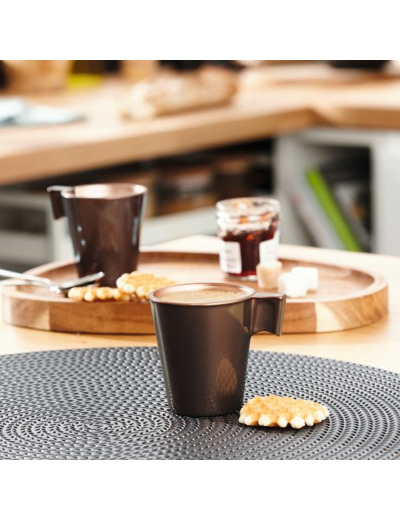 Laissez- vous surprendre par Flashy, cette master gamme est composée d’un mug de 25 cl, d’une tasse 8 cl d’un bol de 50 cl. Une solution pour toutes les boissons chaudes, disponibles en 7 teintes: Latte pour les boissons généreuses, Chocolat pour les boissons réconfortantes, Vert sauge pour une pause sérénité, Rouge astral pour les boissons intenses, Neo gold pour le style, Noir pour des boissons de caractère et Lavande pour une ambiance électrique. Composer la combinaison qui vous ressemble. La gamme Flashy peut accueillir des boissons chaudes jusqu’à 130°c, et passe sans crainte au micro-ondes.