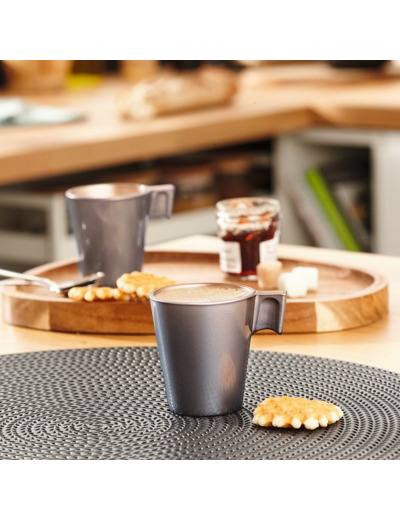 Laissez- vous surprendre par Flashy, cette master gamme est composée d’un mug de 25 cl, d’une tasse 8 cl d’un bol de 50 cl. Une solution pour toutes les boissons chaudes, disponibles en 7 teintes: Latte pour les boissons généreuses, Chocolat pour les boissons réconfortantes, Vert sauge pour une pause sérénité, Rouge astral pour les boissons intenses, Neo gold pour le style, Noir pour des boissons de caractère et Lavande pour une ambiance électrique. Composer la combinaison qui vous ressemble. La gamme Flashy peut accueillir des boissons chaudes jusqu’à 130°c, et passe sans crainte au micro-ondes.