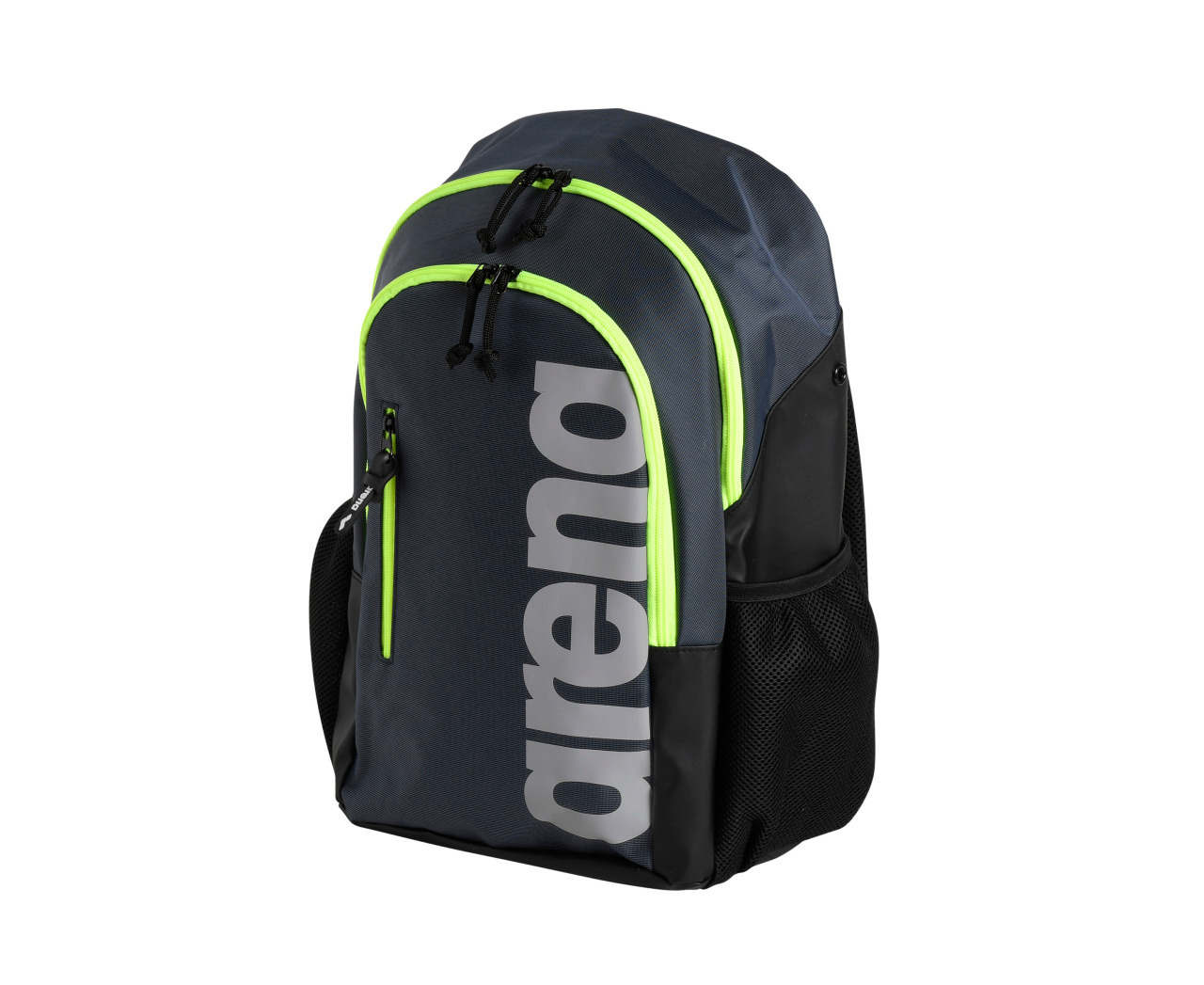Description : De style sportif, le sac à dos arena Spiky III 30 L est idéal pour transporter votre matériel d’entraînement, mais également pour l’école ou les loisirs. Fond hydrofuge pour protéger vos affaires. Ses deux principaux compartiments spacieux et sa poche avant zippée offrent d’excellentes options de rangement. Les poches latérales en mesh sont idéales pour ranger les bouteilles d’eau ou du matériel. Respirants, les inserts en mesh, le panneau arrière et les bandoulières rembourrées garantissent un confort maximal. Dimensions : 45 x 31 x 20 cm, 30 L