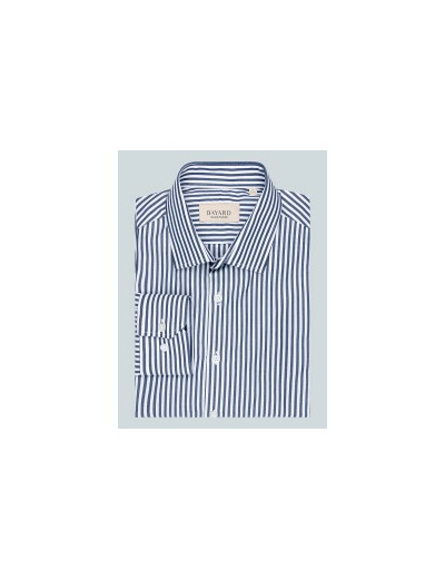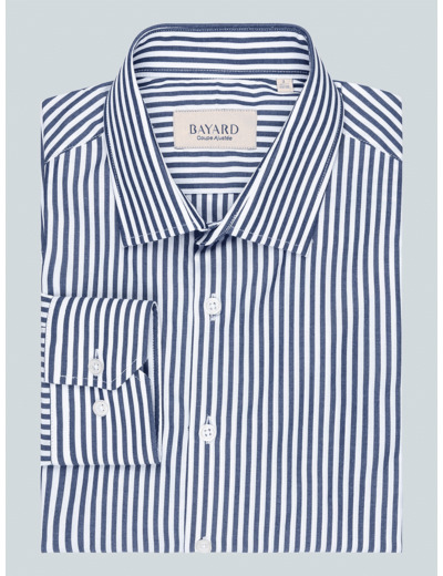 Pour accompagner vos tenues formelles, la chemise blanche traditionnelle s'habille de rayures marine dynamiques ! Son col français classique et ses petits boutons nacrés apportent une allure très distinguée et soignée à votre silhouette. Cette chemise rayée met également en valeur votre ligne grâce à une coupe ajustée qui souligne avec élégance la taille. C'est la touche de bon goût qui vous donne le bon air lors de vos occasions élégantes.