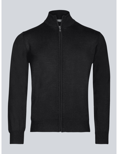 Gilet Zippé Noir En Laine Mérinos