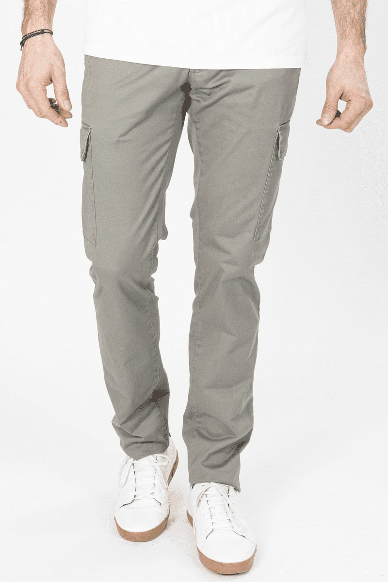 Ce pantalon cargo kaki est disponible du 42 au 54.