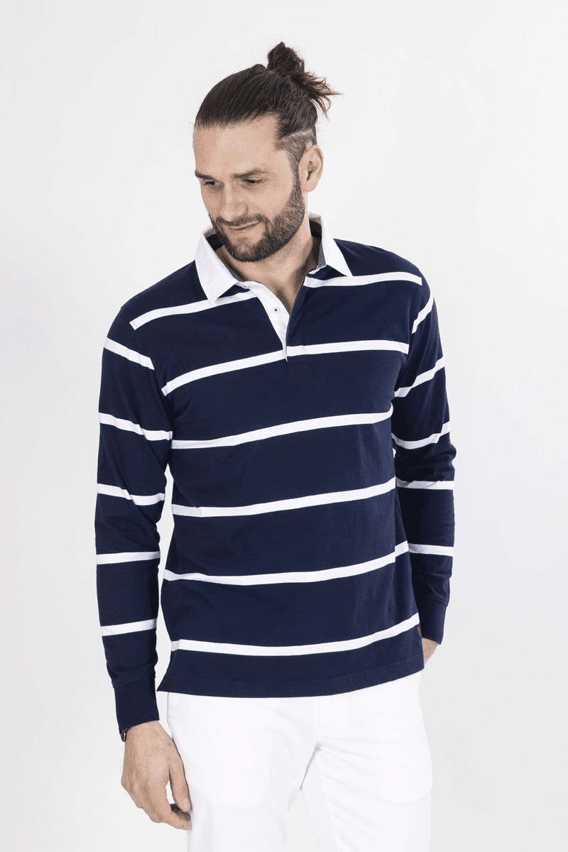 Vêtement casual par excellence, le polo manches longues s'habille de rayures cette saison ! Ce polo bleu foncé prend une allure sport avec quelques rayures blanches, mais un col chemise vient ajouter une touche de chic à votre silhouette. Pour votre confort, ce polo rayé bleu foncé a été fabriqué dans une maille 100% coton. Il est disponible dans une coupe régulière ample sur les flancs pour vous apporter encore plus d'aisance quelle que soit votre corpulence.