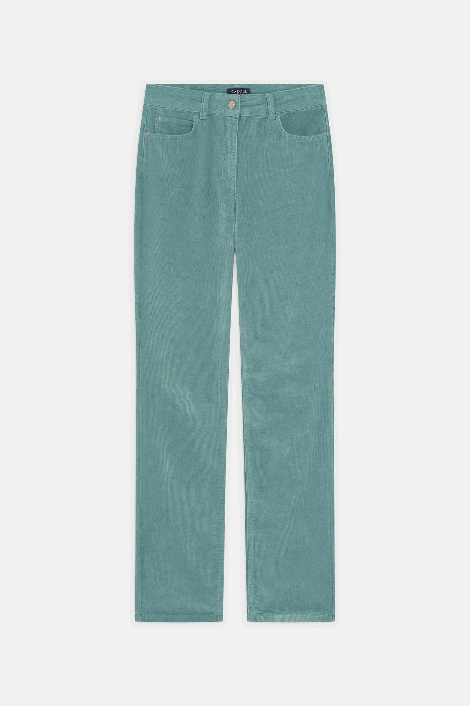 Pantalon droit en velours côtelé Stretch, décliné dans plusieurs coloris au fil de la saison. Pièce incontournable du vestiaire Caroll, ce pantalon se dévoile cette saison dans une version en velours côtelé Stretch. Décliné dans une gamme de couleurs faciles à assortir à vos looks du quotidien, il sera adopté par toutes les morphologies. Un indispensable de votre garde-robe. - Pantalon classique à la coupe droite - Fermé par un bouton métallique gravé Caroll et un zip sous patte - Modèle 5 poches - Longueur totale 108 cm pour une taille 38