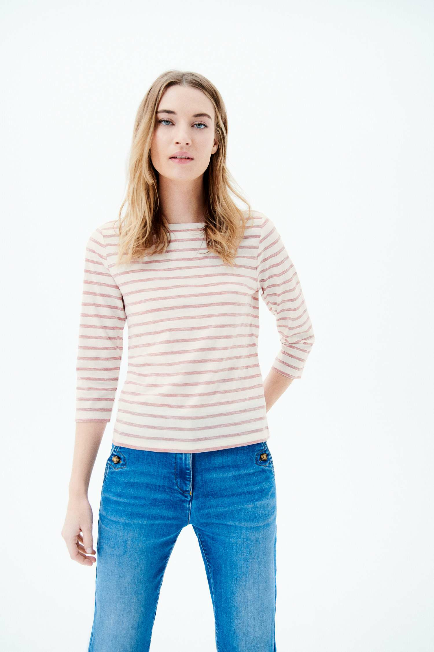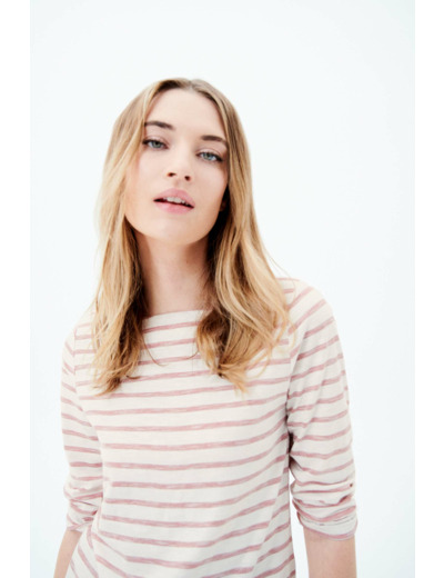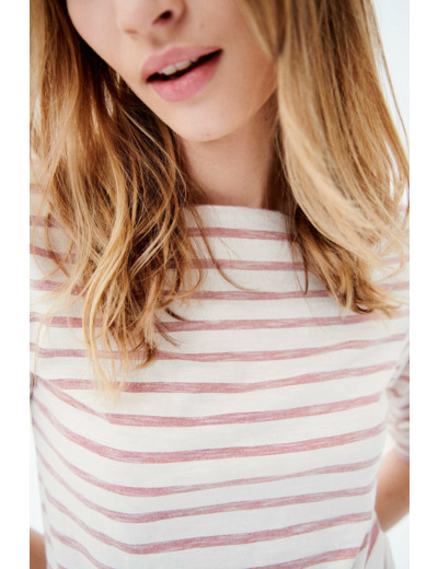 T-shirt droit en 100% coton, ce classique confère un confort sans pareil et se pare d'un motif à rayures horizontales, style marinière épurée chic. - Col bateau - Manches 3/4 - Longueur, 60 cm pour une taille S