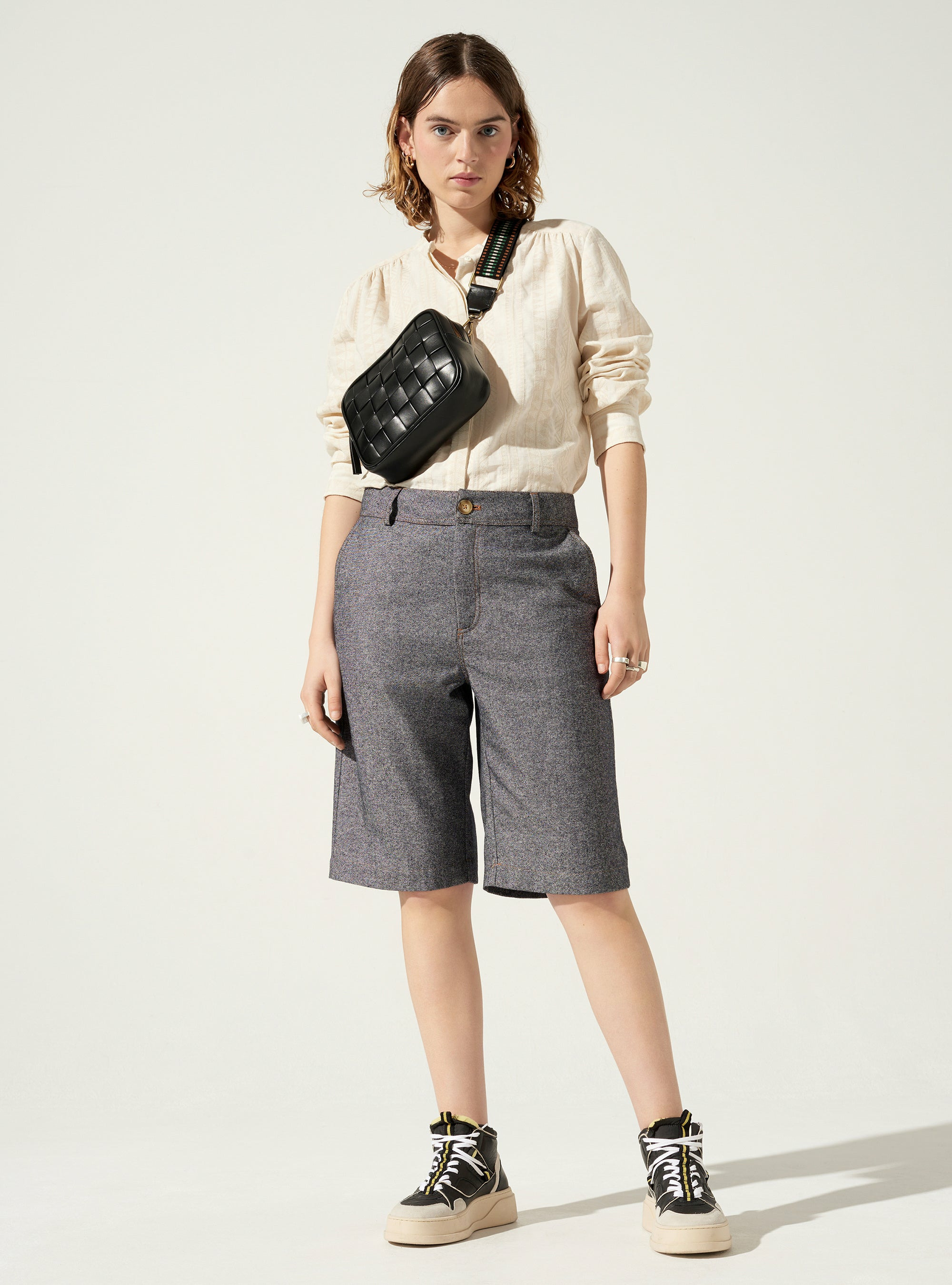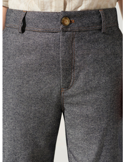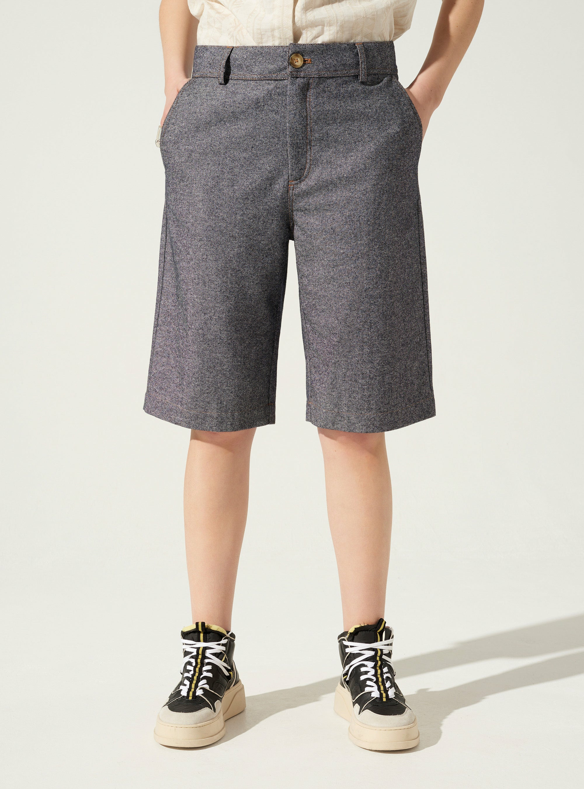 Bermuda droit longueur genou et doublé jusqu'à mi-cuisses, idéal pour porter en mi-saison ou l'hiver avec des collants. Vous aimerez ses poches italiennes devant et plaquées au dos.
