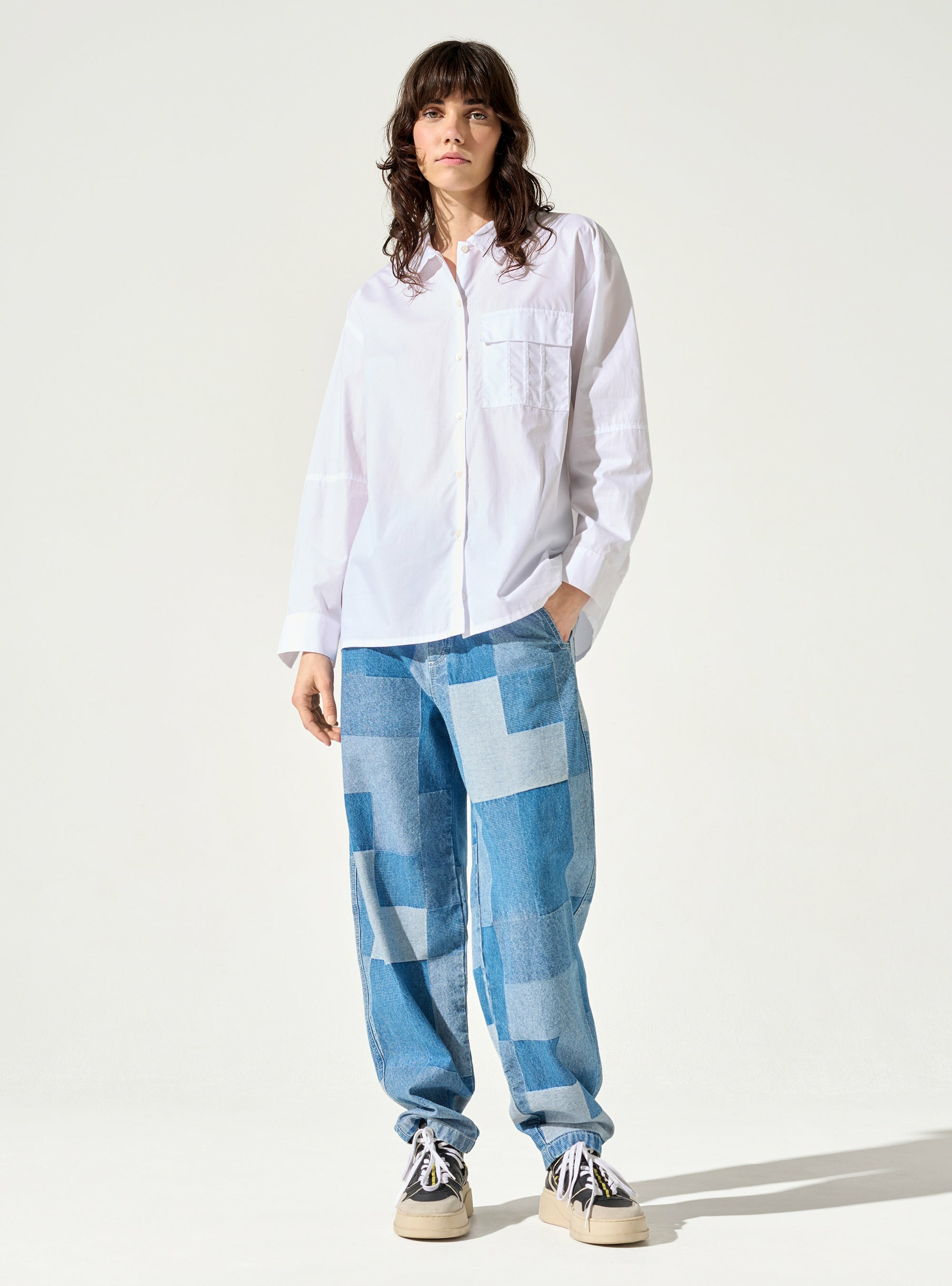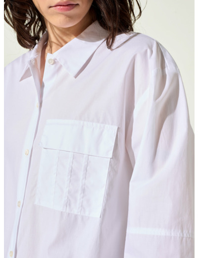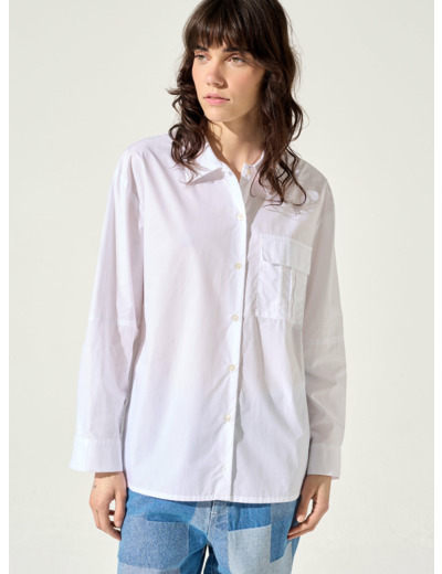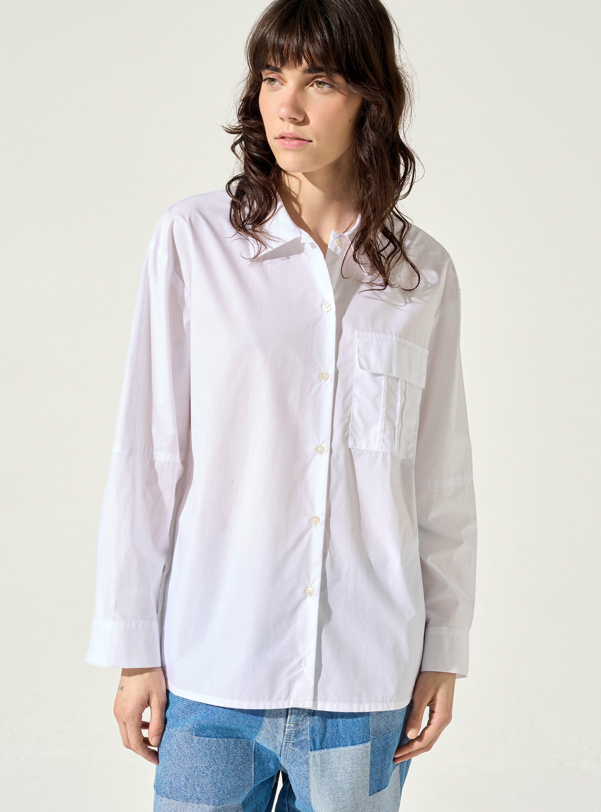 Chemise ample à manches longues qui se terminent par des poignets boutonnés. Vous aimerez ses détails : le pli au creux du dos ainsi que la poche à rabat plaquée à la poitrine avec détails de plis. Matière popeline de coton issu de l'agriculture biologique, idéale au quotidien.