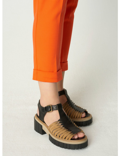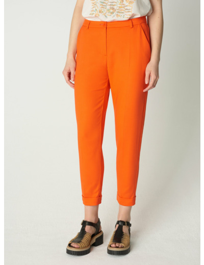 Pantalon droit 7/8, une pièce d'inspiration vintage qui offre une coupe flatteuse. Ce pantalon élégant et pratique, au revers piqué en bas de jambe, sera parfait pour compléter votre dressing avec une touche colorée.Marque : acoté