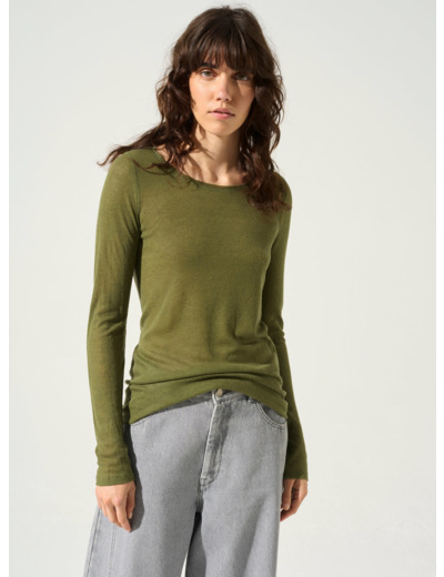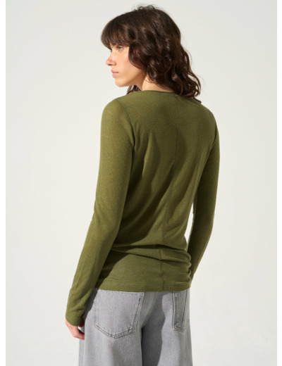 T-shirt ajusté à col rond et à finition bords francs. Il est composé d'un jersey léger tricoté au Portugal qui vous permettra de parer aux journées chaudes grâce à sa fibre naturelle en lyocell respirant. Le petit plus : la couture au milieu du dos.