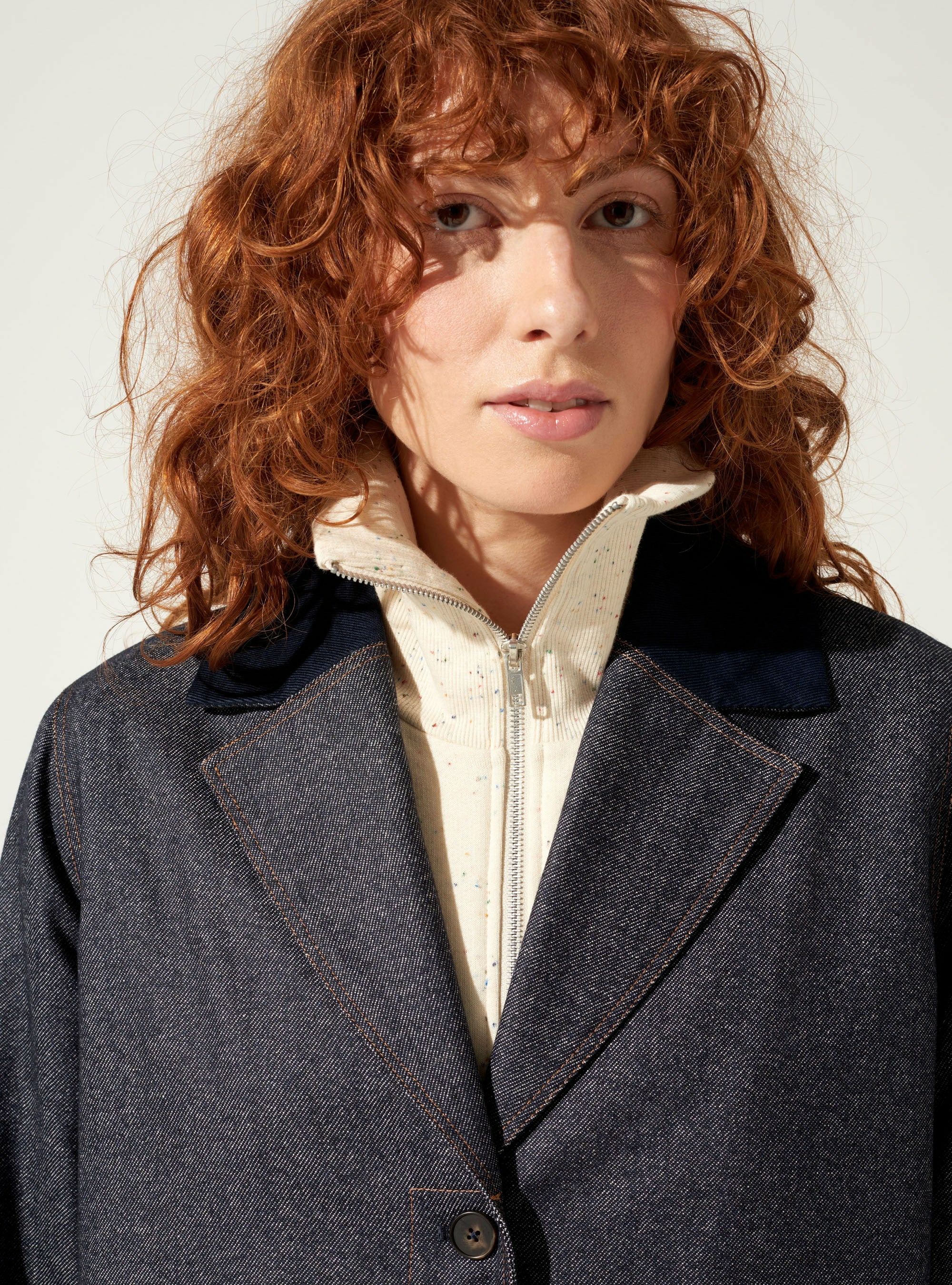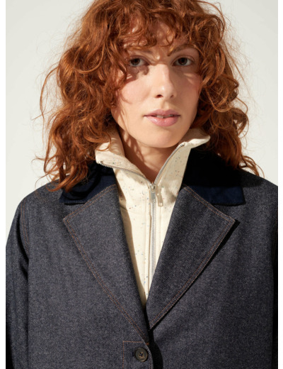 • Composition : TISSU PRINCIPAL:45% COTON 32% LAINE 17% POLYESTER 3% POLYAMIDE 3% CACHEMIRE TISSU 2:97% COTON 3% ELASTHANNE DOUBLURE:100% COTON DOUBLURE MANCHES:70% VISCOSE 30% POLYESTER OUATE GARNISSAGE:100% POLYESTER