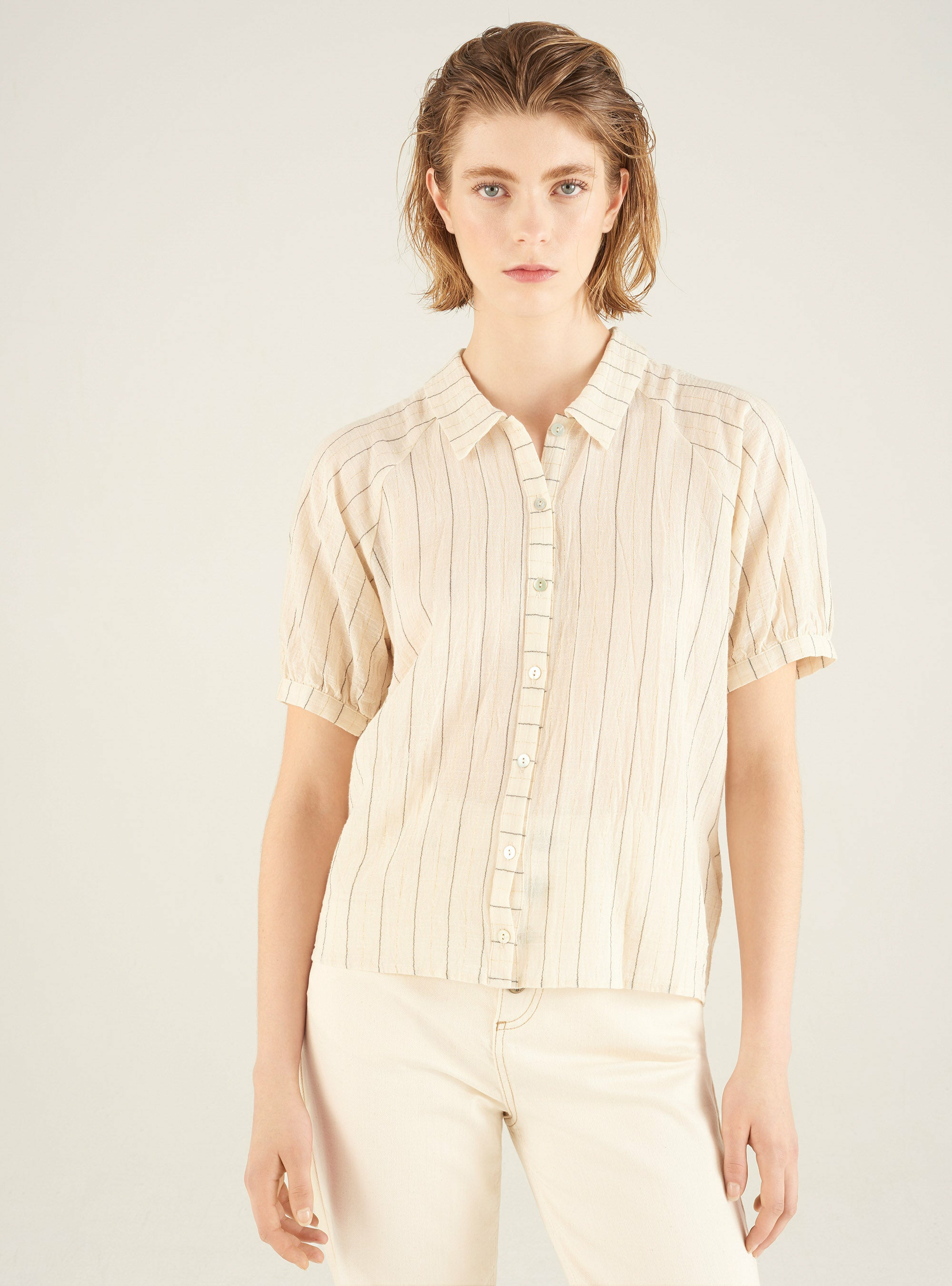 - Col chemise prolongé par une patte de boutonnage milieu devant en sens travers