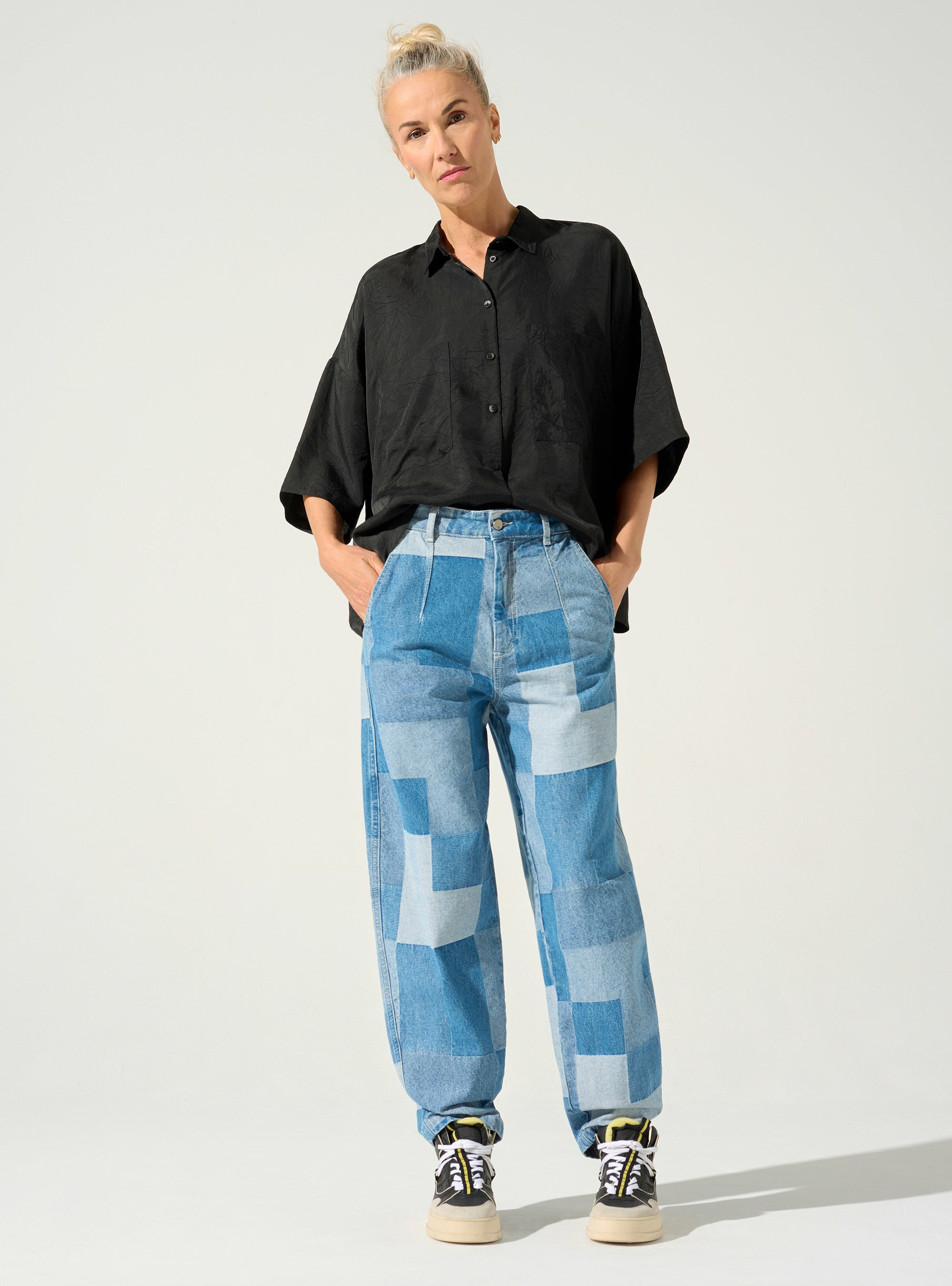 Chemise style boyish à manches courtes avec pli creux dans le dos et poches plaquées à la poitrine. Matière fluide et douce avec un aspect craquelé, satiné. Main fraîche et très agréable à porter à même la peau.