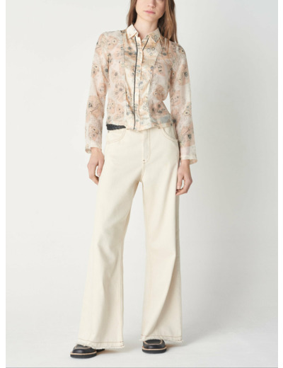 Cette chemise à manches longues présente une combinaison de deux matières pour un effet bi-matière original. Son volume ajusté offre une silhouette élégante et contemporaine tout comme le col chemise. Vous aimerez les détails : l'ouverture boutonnée en nacre naturelle, les empiècements soulignés par un biais noir, ajoutant du contraste, ainsi que celui avec plissé bouillonné à l'avant pour plus de texture. Imprimé délicat et romantique "porcelaine" imaginé par notre bureau de style.Marque : Cotélac