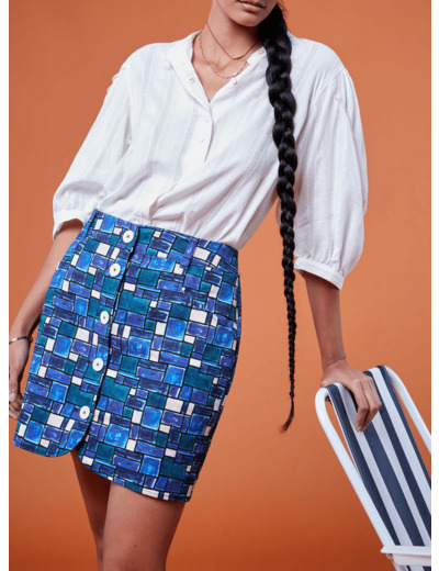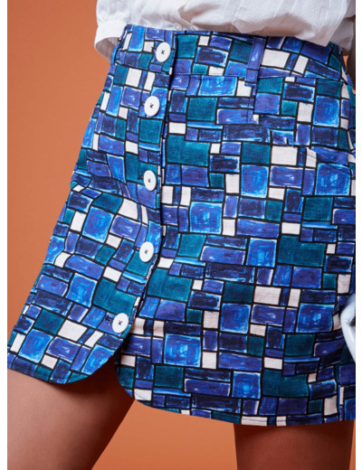 - Imprimé exclusif "Cyclades"- Tissu italien- Taille haute- Longueur mi-cuisse- Boutons en fibre de coton- Poches côtés- Passants à la ceinture