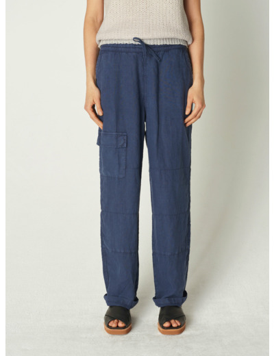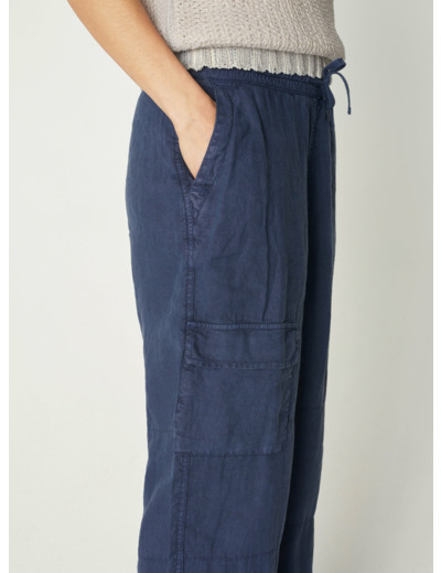 Pantalon loose esprit casual, élégamment élastiqué à la taille et resserré par un lien dans le même tissu, spécialement conçu pour allonger la silhouette tout en offrant un confort maximal. Ce pantalon est l'incarnation du vêtement "voyage" par excellence : pratique, confortable et toujours chic.Marque : Cotélac