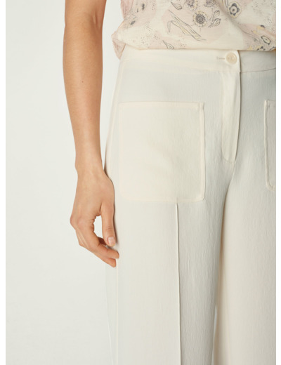 Ce pantalon présente une coupe large et droite, offrant un style élégant et intemporel. Sa taille haute et son pli nervure ajoutent une touche de sophistication à la silhouette. Des poches plaquées sont situées à l'avant et des poches passepoilées sont à l'arrière.Marque : Cotélac