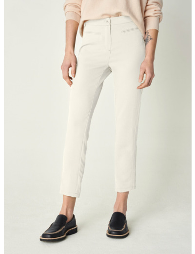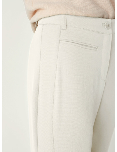 Ce pantalon droit offre une coupe ajustée, mettant en valeur la silhouette avec élégance. Les découpes sur les côtés ajoutent une touche de modernité au design, tout comme les poches passepoilées. Une ceinture boutonnée en corozo est située devant, ajoutant une touche de sophistication à la pièce.Marque : Cotélac