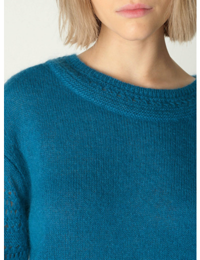 Pull à manches longues combinant élégance et confort pour un look raffiné au quotidien. Son encolure dégagée met en valeur le port de tête, tandis que la finition en point dentelle ajoute une touche de finesse et de délicatesse. Confectionné dans une matière à la fois légère et chaude, ce pull est idéal pour vous envelopper de douceur tout en restant élégante pour les journées fraîches ou les soirées de fin d'été.Marque : Cotélac