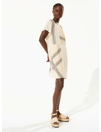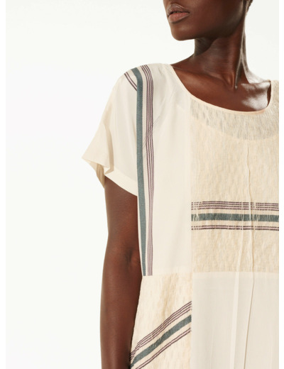 - Encolure ronde fermée par une goutte boutonnée nacre naturelle au dos