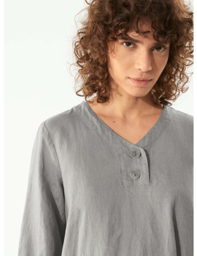 - Encolure en V terminée par une patte de boutonnage corozo