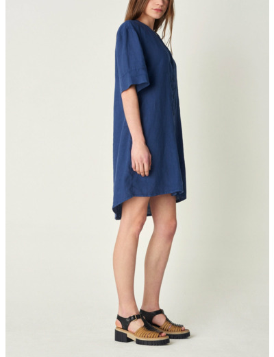 Cette robe courte adopte un esprit tunique avec un volume ample, offrant un style décontracté et confortable. Vous aimerez : son col rond, l'ouverture boutonnée en nacre naturelle, le travail de découpe de type "patch" ainsi que les emmanchures manches courtes. Cette robe est parfaite pour une tenue décontractée et élégante, idéale pour diverses occasions.Marque : Cotélac