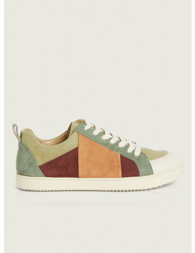 Baskets basses à l'effet patchwork de cuirs de chèvre velours pour un style décontracté et élégant. La mousse sur l'arrière de la chaussure et au niveau de la languette vous procurera tout le confort dont vous avez besoin tout au long de la journée. La semelle est en caoutchouc recyclé (40%). Idéal avec un jean mom pour un style casual ou avec une robe longue pour un style plus raffiné.