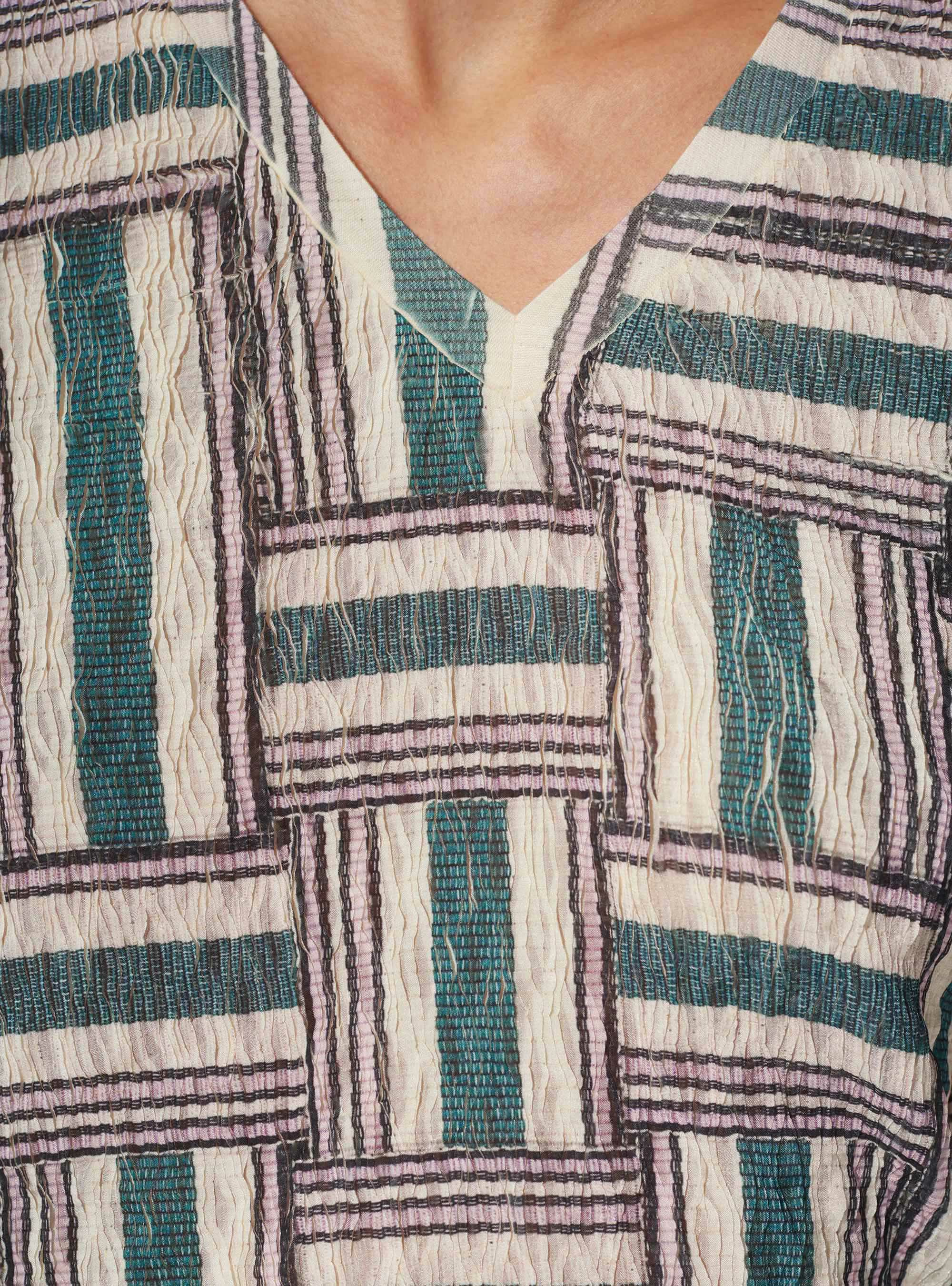 - Tee-shirt loose sans manches en mix matière avec plissé ondulé