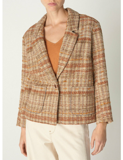 Veste à l'esprit tweed, disponible dans une palette de coloris naturels. Cette pièce discrètement signée se distingue par sa doublure au motif "Porcelaine" maison. Cette veste est l'élément parfait pour ajouter une touche d'élégance à votre tenue streetwear et casual.Marque : Cotélac