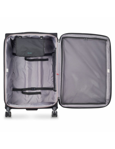 La collection HELIUM DLX de DELSEY PARIS combine parfaitement solidité, légèreté et sécurité grâce à son innovation brevetée le zip SECURITECH® 2. Ses doubles roues maniables sont aussi très silencieuses, pour un voyage des plus agréables !• Intérieur :