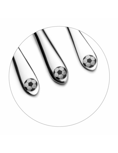 Ensemble de 3 couverts en acier inox et finition polie brillante. Motif coloré gravé sur le manche.