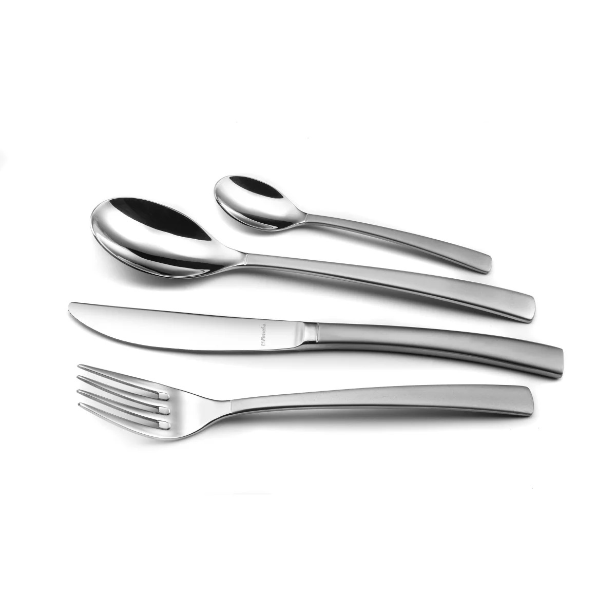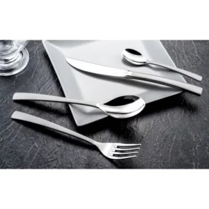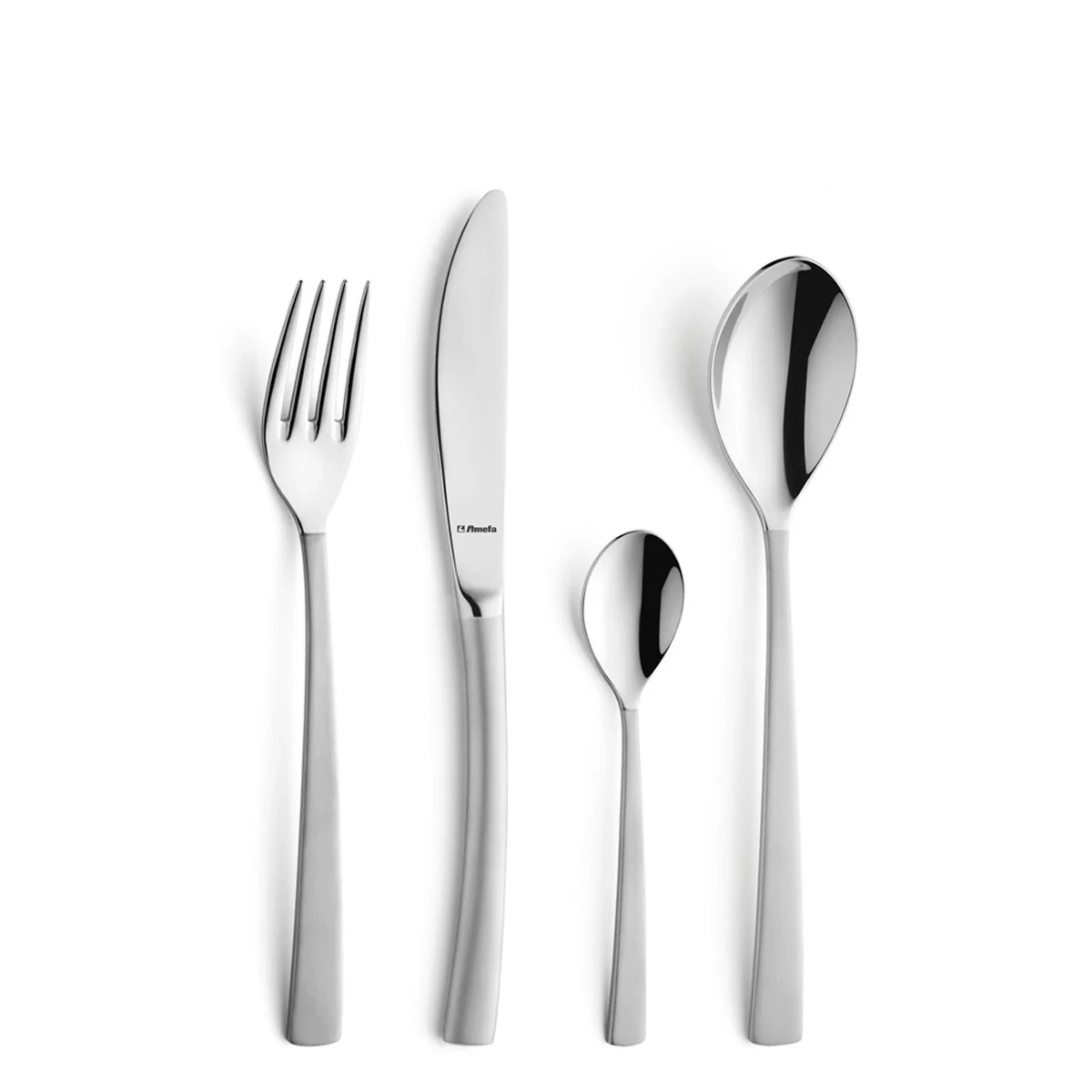 Ménagère 24 pièces composée de 6 fourchettes de table, 6 couteaux de table, 6 cuillères de table et 6 cuillères à café.
