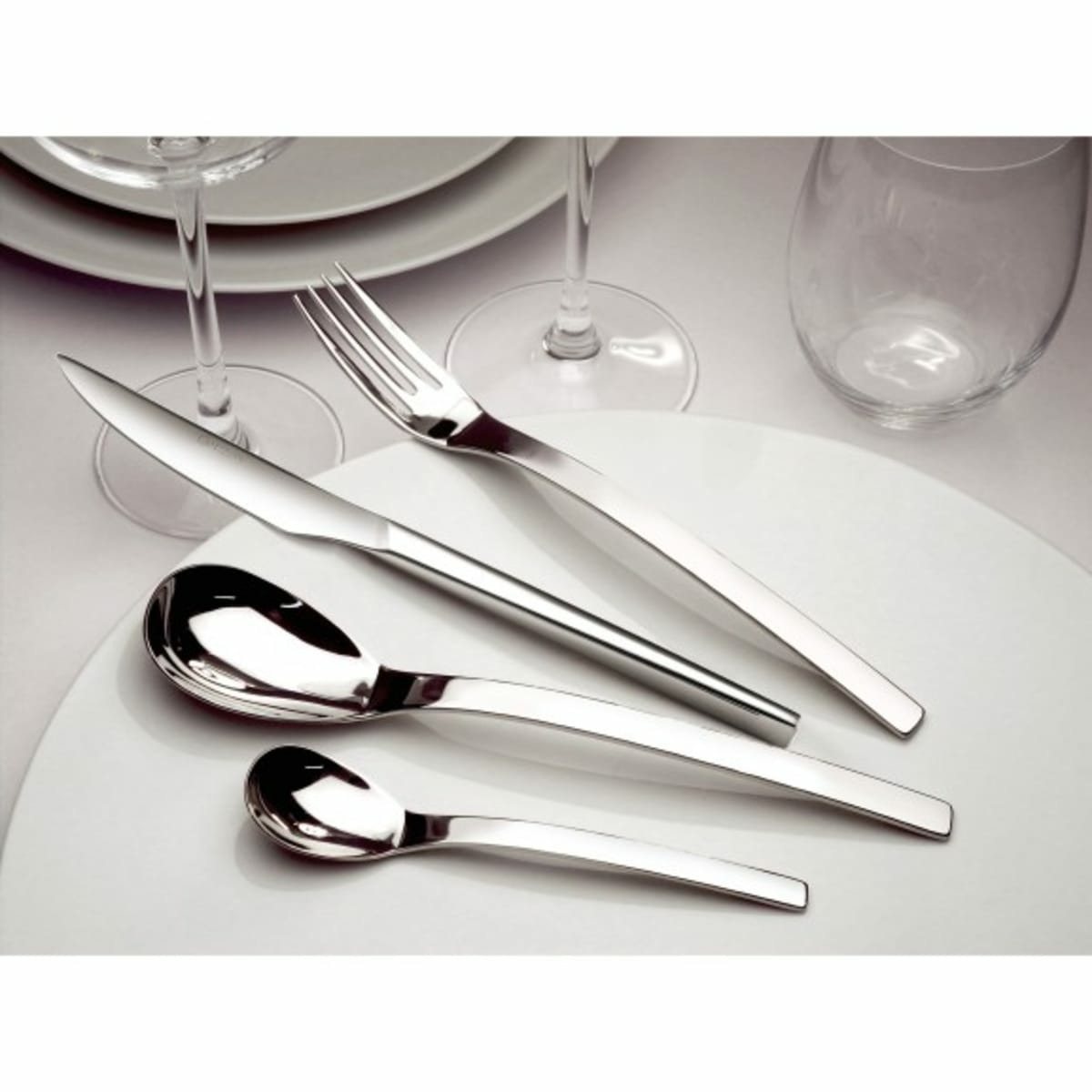 Ménagère composée de 6 fourchettes, 6 couteaux de table, 6 cuillères de table et 6 cuillères à café en acier inoxydable 18/10.