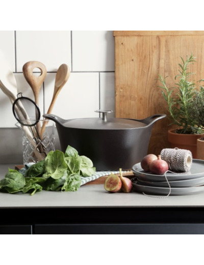 Volcan réinvente la traditionnelle cocotte en fonte de fer émaillée. Compatible tous feux et four, la cocotte optimise la répartition de la chaleur sur les aliments. Les parois émaillées garantissent sa solidité et sa durée dans le temps. Astucieux, son couvercle intégré aux parois évite tout débordement lors de la cuisson.
