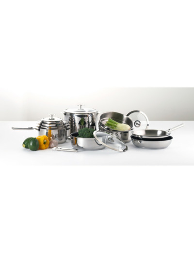 Elégante et dynamique, la gamme Eclipse est élaborée en acier inox 18/10 avec finition miroir. Les ustensiles sont à poignée amovible. Le fond encapsulé est anti-adhérent, thermo-diffuseur et compatible tous feux, y compris induction. Astucieux, les ustensiles sont empilables pour un rangement optimal.
